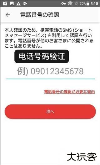 4、填入手机号码(仅090/080/070开头可验证),接受验证码验证即可完成注册