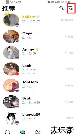 2.在推荐列表中,可以选择外国的好友进行聊天,也可以点击右上角的筛选图标,进入到筛选界面中