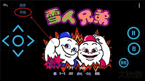 2、然后玩家可以选择你想玩的一款游戏,小编这里以雪人兄弟为例,进入游戏界面后直接点击开始选项即可;