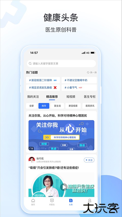 1、医患互动:通过二维码建立专属问诊关系,支持碎片化咨询。