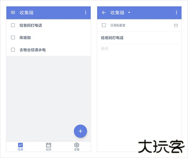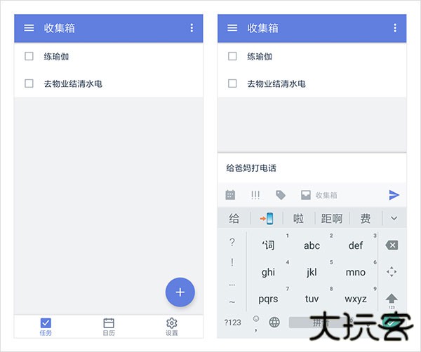 1、创建任务,点击列表页右下角「+」键,在输入框里写下任务后点击右侧「保存」图标即可创建任务