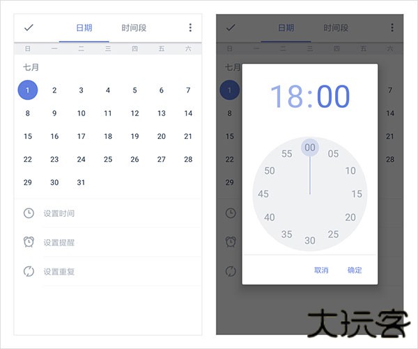 先选择日期,如果需要提醒,点击「设置时间」选择几点几分,最后点击页面左上角的「完成」图标即可成功设置提醒