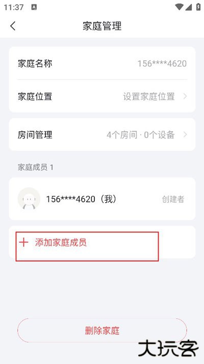 3.然后点击添加家庭成员,就可以通过输入家人手机号邀请进入