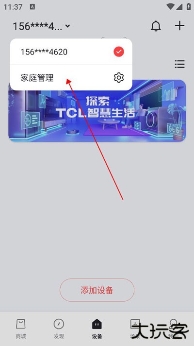 1.打开TCL体脂秤app,选择左上方的账号选项,进入家庭管理设置页面