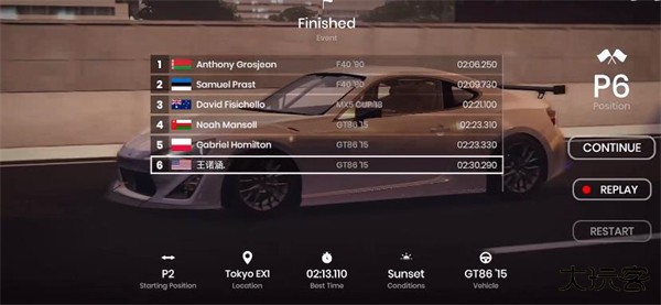 4、驾驶车辆抵达终点后就可以完成竞速任务,不同的任务目标要求是不同的,完成目标后可以获得各种奖励。