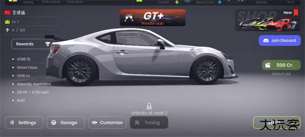 6、在主界面点击Tuning可以调校你的车辆,调校后的车辆开起来会更顺手。