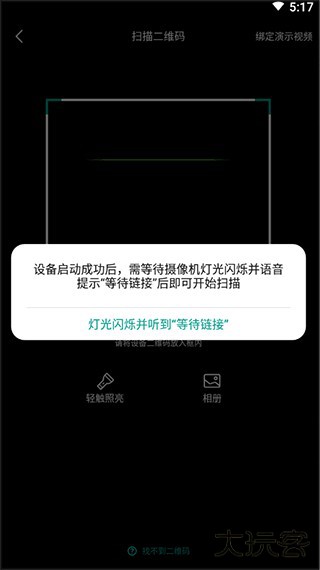 3、开启摄像机,听到语音提示,点击已听到等待连接。