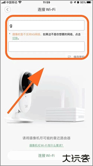 4、将手机二维码对准摄像头,扫描成功后,输入WiFi名称和密码连接即可。