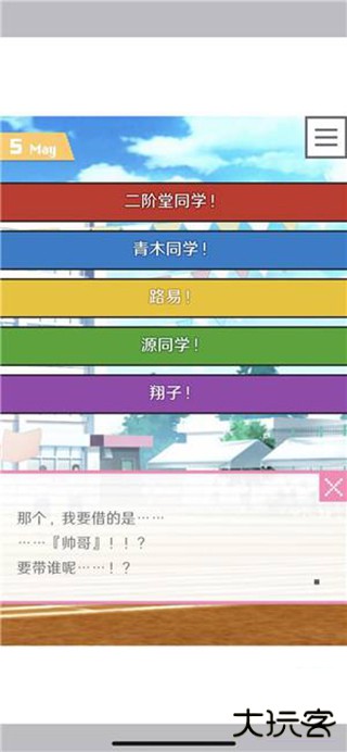 关键节点选项边框色对应角色:红 = 二阶堂 / 蓝 = 青木 / 黄 = 路易或利欧 / 绿 = 源 / 棕 = 小野老师 / 黑 = 神崎同学 / 紫 = 闺蜜 / 灰 = 狸猫