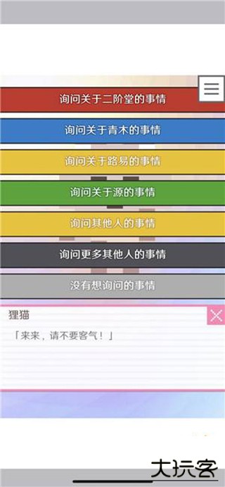 选择灰色选项 "没有想询问的事" → 进入狸猫支线