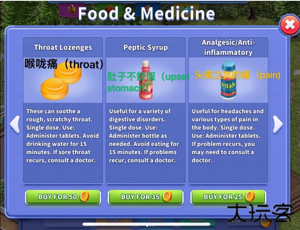 首要步骤为确认冰箱内存有食物。若成员处于病患状态(如显示 “有点不舒服”),需进行诊治以恢复健康。通过托起与放置操作可触发成员动作提示,揭示具体症状,从而确定商店需购药品类型。