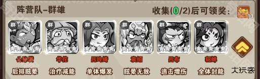 核心思路:吕布(追击)+华佗(治疗)为基础,搭配貂蝉(全体)、公孙瓒(控制),靠“群雄技能多样性”打特殊效果,适合针对阵容