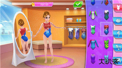 2、自定义角色系统包含体操服饰库、发型数据库及配饰组件(涵盖闪面发饰、运动护具等),支持多维组合搭配,创建个性化体操运动员形象;