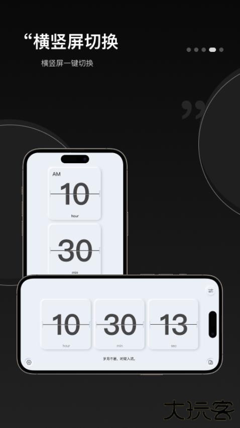 全屏翻页动画,经典动态翻页时钟、简约表盘时钟、极简数字时钟等多种样式任意挑选