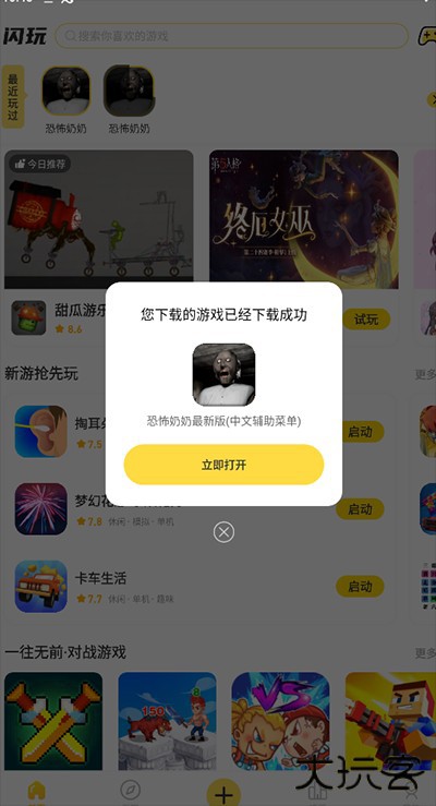 3、游戏下载完成后会有弹框出现,点击立即打开