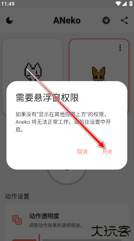 7、需要开启悬浮窗权限,点击允许。