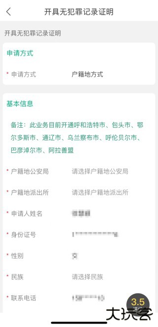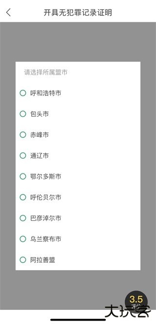 3、选择所属的盟市后,填写相关表单,完成后单击“提交”完成申请。