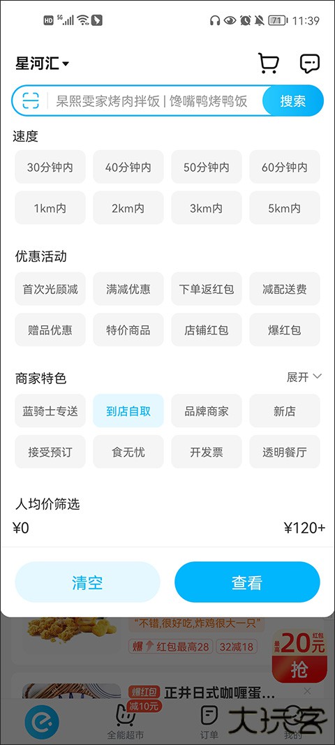1、在app首页中有筛选功能,选择到店自取功能即可。