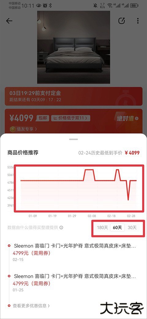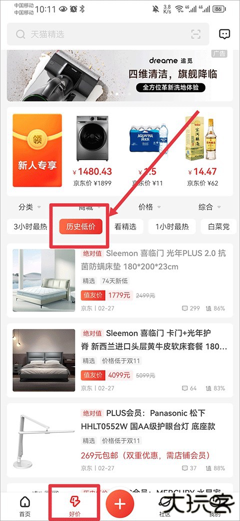 1、在好价页面中,点击历史低价,在该界面选择你想看的产品