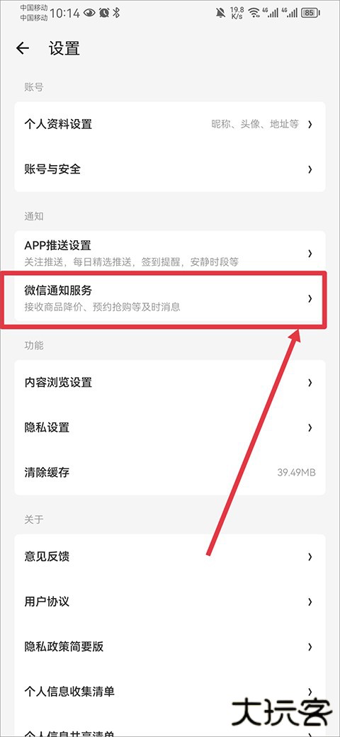 3、然后在设置页面将微信通知服务开启即可在第一时间内接收到降价提醒