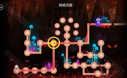 2、从森林岔口进入洞穴后,在水晶通道地图3(下图黄圈处)进入香菜洞穴。