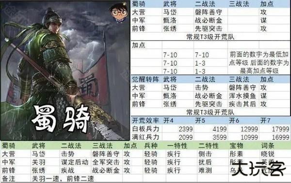 蜀骑,蜀骑自从开发至今从未被主五淘汰过,于是也有了衍生的开荒队,但这个开荒队缺点极其明显,就是缺资源,铁和粮食消耗很高,玩家难以掌握开荒节奏,限制了他进一步提升排名