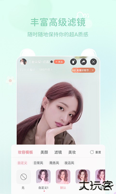 2、实时美妆:支持多种场合的妆容模板,可精细调整口红、腮红、眼影、粉底、眉毛等细节,一键换妆。