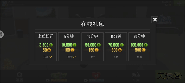 2、点击左侧的 “在线奖励” 按钮,领取您的免费礼包。