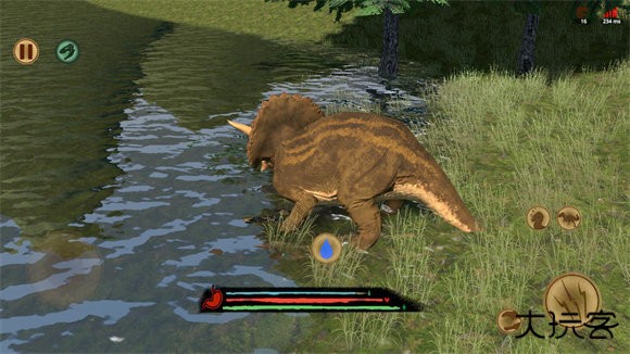6、在地图场景中自由探索,通过攻击其他恐龙玩家获取优势,及时收集水源、食物等资源维持状态,持续击败对手以提升生存排名。