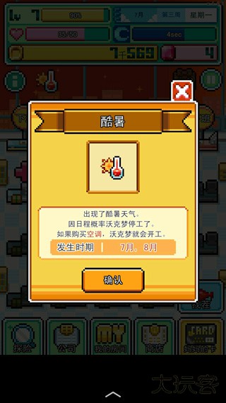 3、动态气候系统深度融入经营环节。每月随机生成的气候条件(如极端高温、沙尘暴)将显著干扰员工工作效率。管理者需定期通过百货商店采购环境调节设备 —— 空调应对酷暑,空气净化器解决沙尘问题 —— 形成持续性的环境管理策略,以维持团队稳定产出。