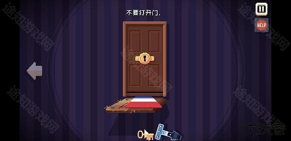 6、把法国国旗放到门的下方,用鼠标光标开门锁,剧情对话后,再次用鼠标光标开门锁,然后迅速点击门下的法国国旗(如果点慢了会拿不到钥匙,需要再次用鼠标光标开锁),得到钥匙,用钥匙开门。