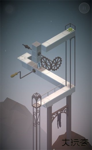 2、待角色行至齿轮之上后,再次旋转轮盘,将齿轮旋转至对岸方向,使角色安全抵达。