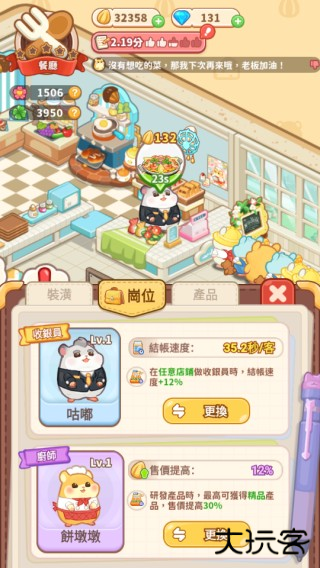1、多元店铺,逐步解锁。游戏以经营仓鼠世界的商业街为核心目标,玩家需不断开拓,解锁风格各异的店铺类型,满足仓鼠顾客的用餐、购物等多样化生活需求。
