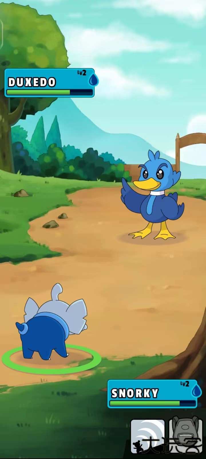 6、遭遇野生宝可梦后,从屏幕底部的技能面板选用招式进行对战收服;