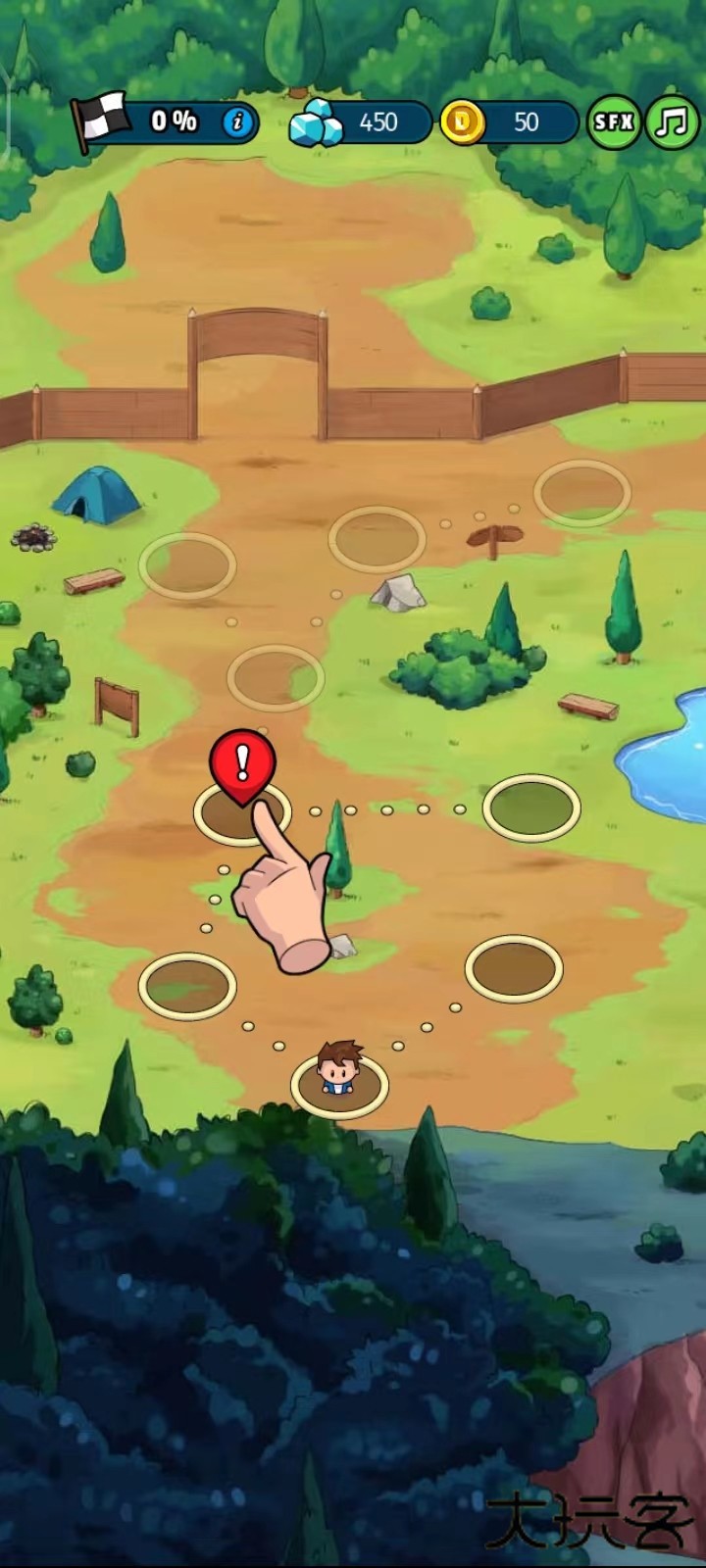 5、观察主地图界面,寻找带闪烁标记的告示点并点击互动;