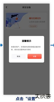 3.点击绑定您的手表,选择可连接设备,在弹出的温馨提示窗口中点击设置,开启全部授权。