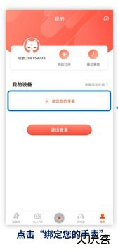 2.登录运动健康app并完成与手表的配对连接,然后登录喜马拉雅穿戴app,进入我的界面选择我的设备选项