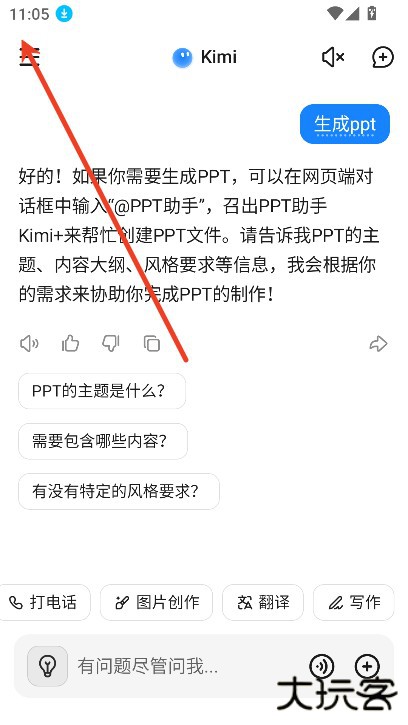 1、打开kimichat手机版,进入首页即聊天页面。
