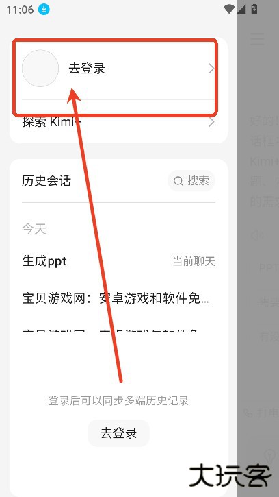 1、在kimichat手机版页面上,点击左上角三杠,进入