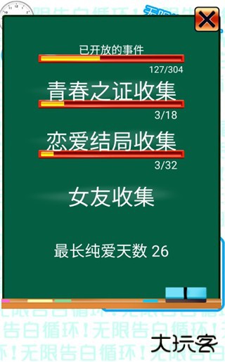 7、点击恋爱结局收集,可以欣赏玩家自己收集的结局。