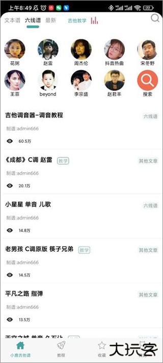 1、打开吉他谱软件,然后点击我们要弹奏曲子的歌手。