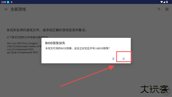 2、之后再点击启动bios,系统会提示bios镜像缺失,选择是导入bios。
