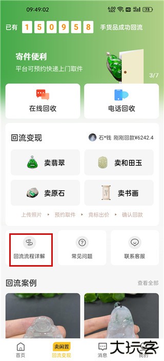 1、打开回流翡翠回收app,点击底栏回流变现,如图所示