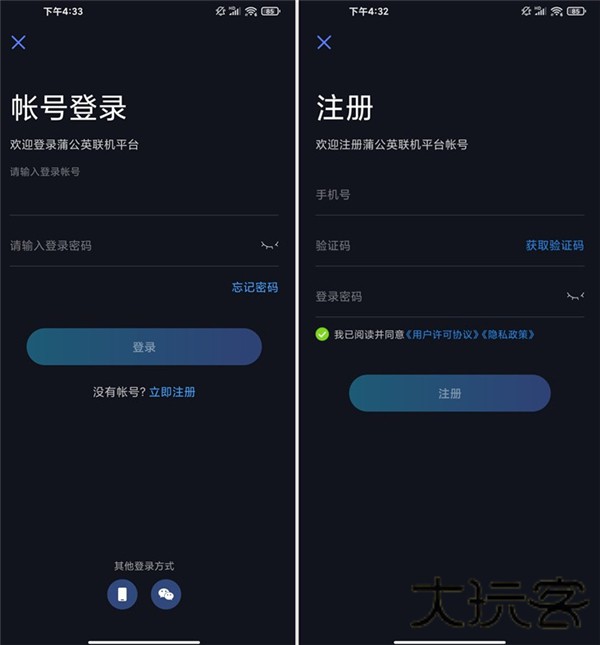 第一步:房主下载、安装蒲公英游戏客户端,支持使用贝锐账号/手机验证码/微信扫码快速登录。
