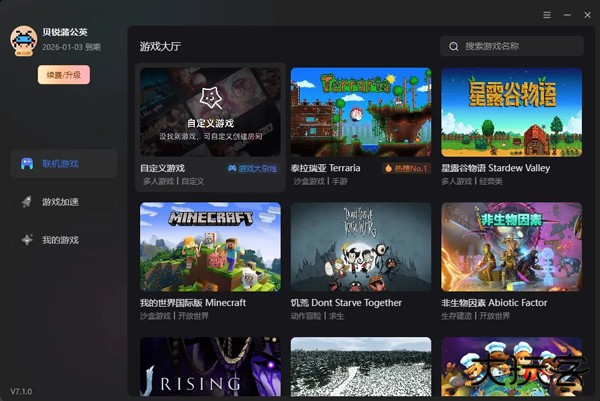 第二步:房主进入游戏大厅,选择要联机的游戏或自定义创建。