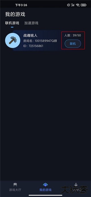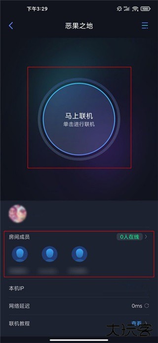 进入游戏房间可查看该虚拟局域网房间内的成员,点击【马上联机】,即与房间内成员联机成功