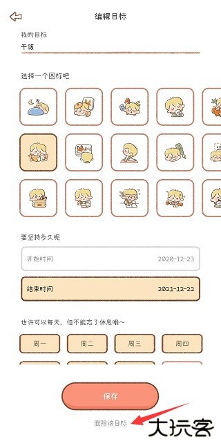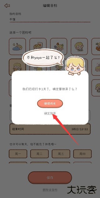 2、选择一个已设定的打卡目标。