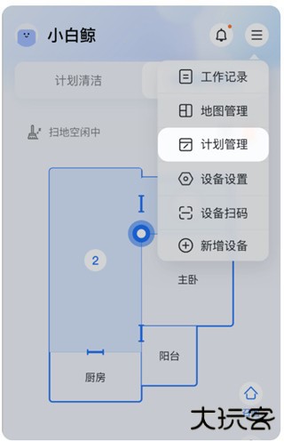 1.下载并安装云鲸智能app官方版,完成后打开软件,然后点击计划管理,进入自动清洁计划界面