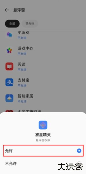 2、有些手机会提示没有获取到悬浮窗权限,根据提示打开准星精灵的悬浮窗权限即可。