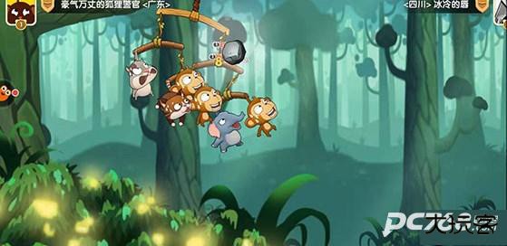 2、当我们丢完之后就轮到对方丢石头了,当我们把对方所有的猴子都打下树之后就算游戏胜利了。在对战的过程中是十分考验我们的计算能力的,因为我们扔出去的石头都是抛物线,所以我们需要手动来控制石头的落点,并且双方是不停晃动的,所以进攻的难度还是比较大的。而且在游戏中是由不同的动物的,猴子扔出去的是石头,仓鼠仍出去的蘑菇,命中之后可以使对方直接掉落在树下,猫咪仍的是飞刀,伤害更高,等等。